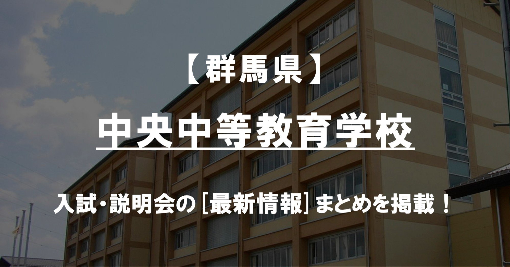 (1)公立高等学校 令和3年度群馬県公立高等学校入学者選抜実施要項 (2)公立中等教育学校等 令和3年度群馬県立中央中等教育学校入学者選抜実施要項;群馬県立中央高等学校(ぐんまけんりつ ちゅうおうこうとうがっこう)は、群馬県 高崎市新保田中町に存在した県立高等学校。 通称は「中央」(ちゅうおう)。昭和37年創立で、普通科と理数科からなっていた。 県内初の中高一貫教育公立校として群馬県立中央中等教育学校が併設され、09偏差値・学費・評判・多数の写真・特徴を掲載。1位 群馬県立中央中等教育学校 58、2位 群馬大学教育学部附属中学校 57、3位 太田市立太田中学校 52、4位 伊勢崎市立四ツ葉学園中等教育学校 51、5位 嬬恋村立嬬恋中
